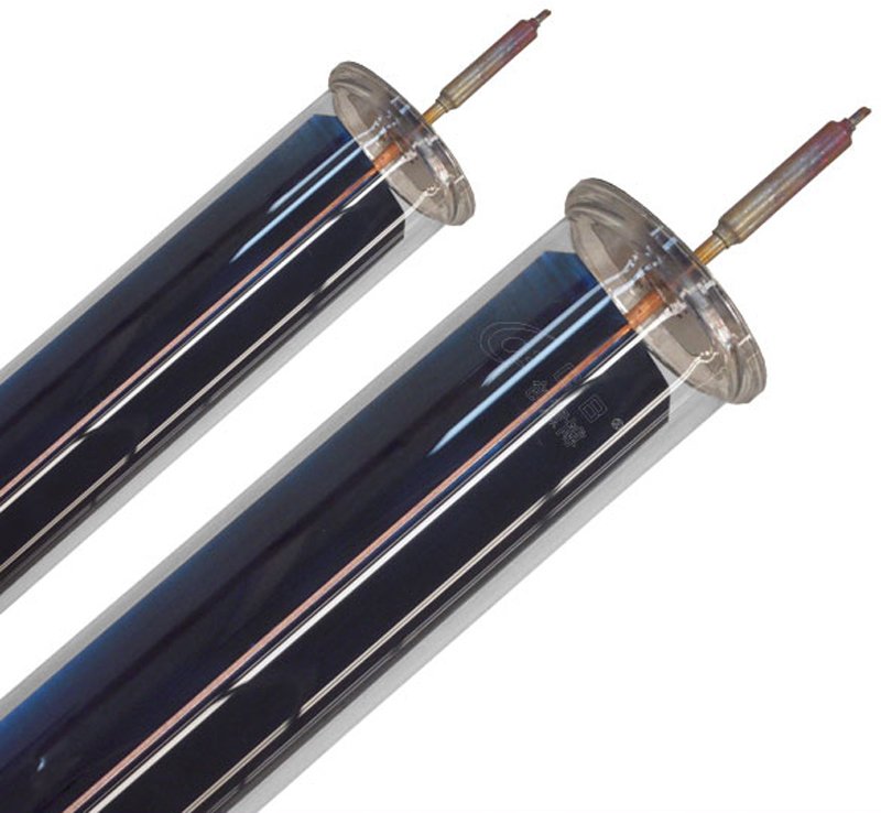 玻璃金属热管真空管主要采用磁控溅射高温选择性吸收镀膜和玻璃-金属高温热压封技术,集成了高效导热的热管式紫铜管芯,铜质吸热翅片通过先进的超声焊接技术将吸热体和导热热管焊接在一起,将其密封在高硬度的硼硅玻璃内并抽成真空,形成高效的玻璃金属热管真空管。2.0mm厚的硼硅玻璃加强了抗冰雹和抗机械冲击性能。
